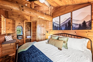 This four-bedroom cabin is designed with families in mind. Imagine the kids' excitement in their very own bunk/game room – a space where they can play, laugh, and make lasting friendships. Meanwhile, the adults can unwind in one of two beautifully designed master suites on the lower level, each with its own private bathroom. Upstairs, a king bedroom and the bunk/game room with a full-over-full bunk bed (sleeps up to 4 kids or 2 adults) provide comfortable accommodations, with a shared bathroom conveniently located nearby.