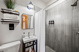 Four full bathrooms mean no more waiting in line! The main floor bathroom boasts a walk-in shower, while the ensuite bathrooms offer the flexibility of a walk-in shower and a shower/tub combo – perfect for little ones. We also provide all the essentials, from toiletries to a washer/dryer, iron, and ironing board, so you can pack light and focus on enjoying your vacation.